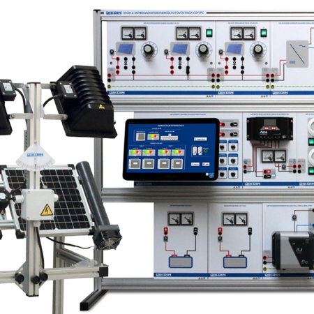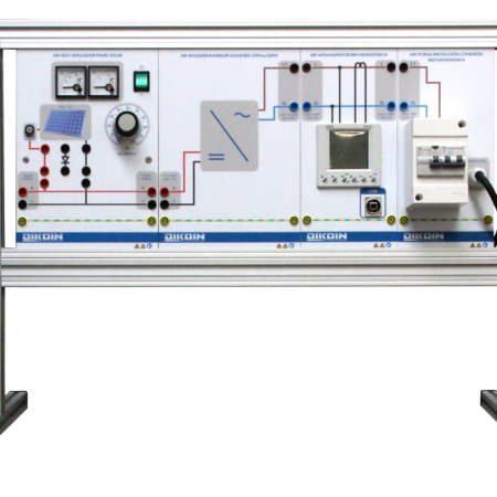 The equipment is designed to understood in a very visual and intuitive way quickly the operation of the assembly, not only knowing the elements of which it consists, but having them also to connect by means of the security cables supplied for that purpose. This is achieved by arranging the equipment in schematic and connectable panels.