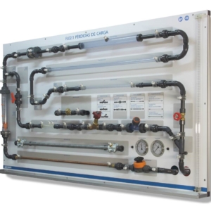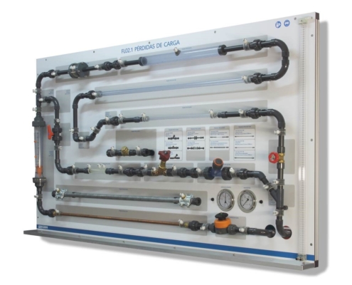 El equipo FL02.1 ha sido diseñado para el estudio, tanto de las pérdidas por fricción en tuberías, como de las pérdidas producidas por elementos característicos de las instalaciones como son; accesorios, válvulas y elementos de medida.