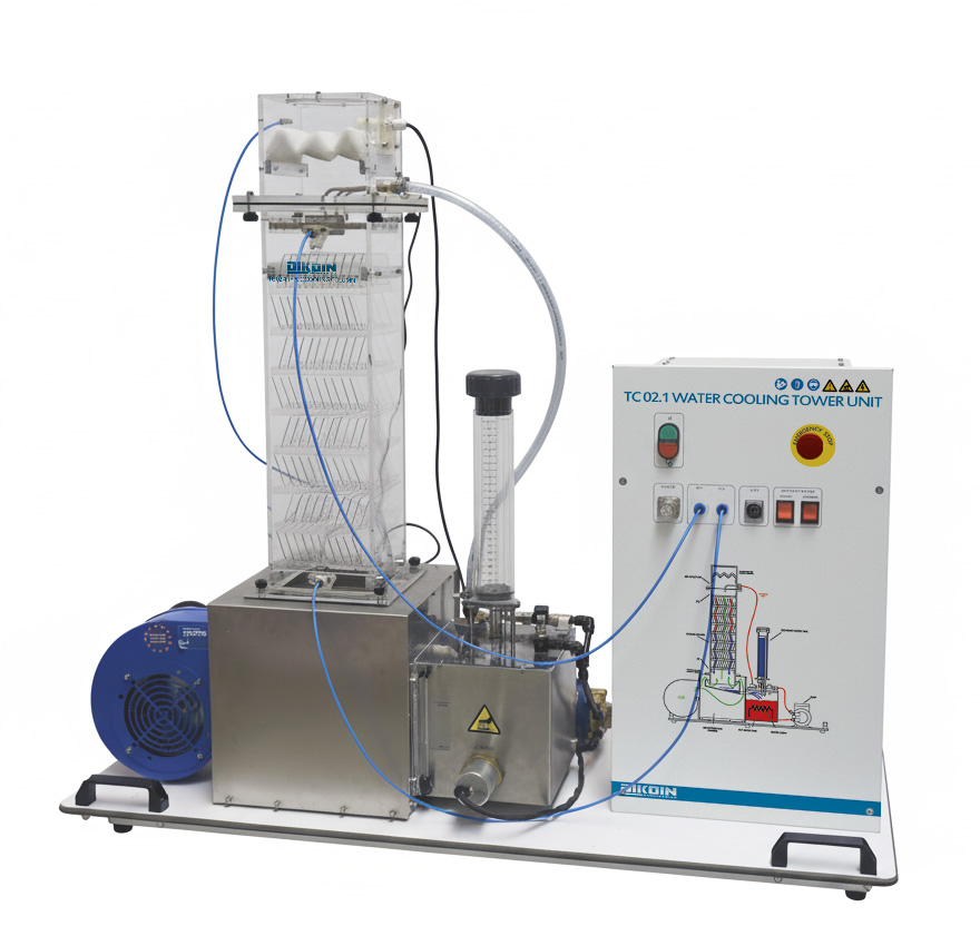 The TC 02.1 unit operates a standard cooling method, used in the industrial sector. This method involves cooling hot water to environment temperature.